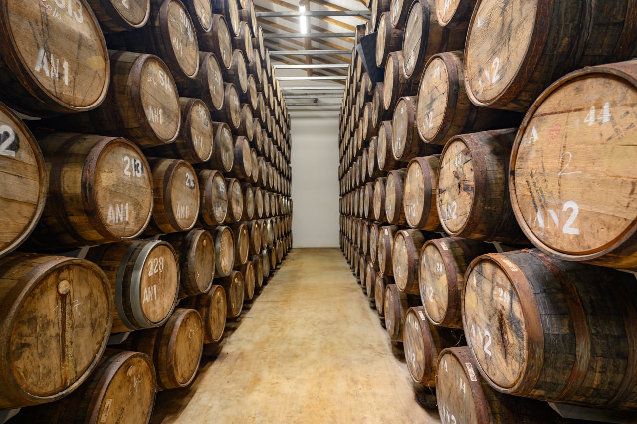 Un chai de vieillissement et une ligne d'embouteillage permettant de produire toute une gamme de produits à base de rhum.
