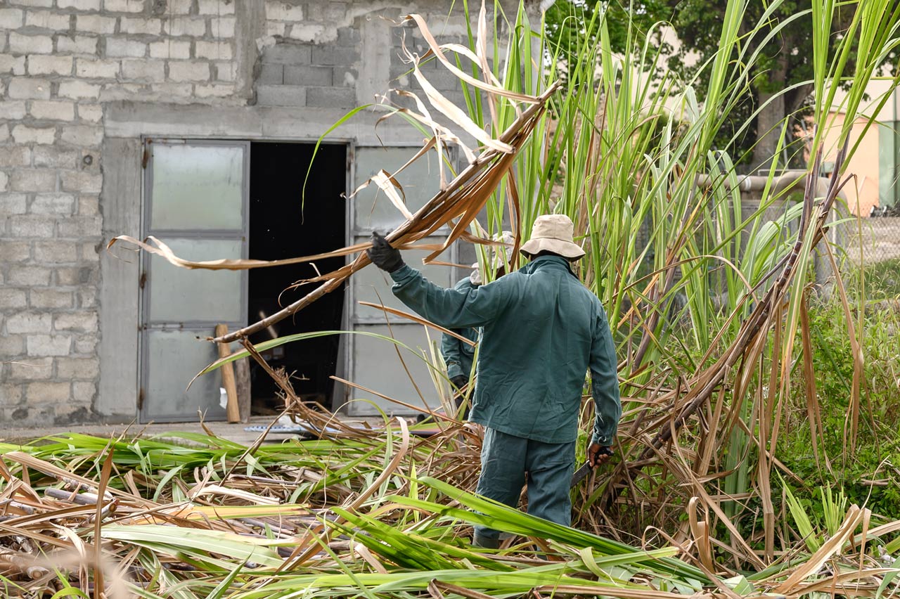 Une plantation de 62 hectares de canne à sucre servant à la fabrication de rhum (sur place) et de sucre (à Grand Bourg).